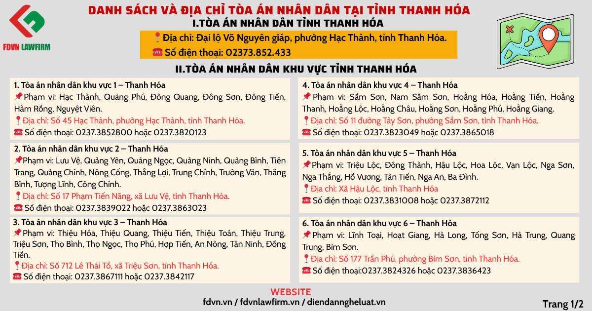 DANH SÁCH VÀ THÔNG TIN CÁC TÒA ÁN NHÂN DÂN TẠI TỈNH THANH HÓA