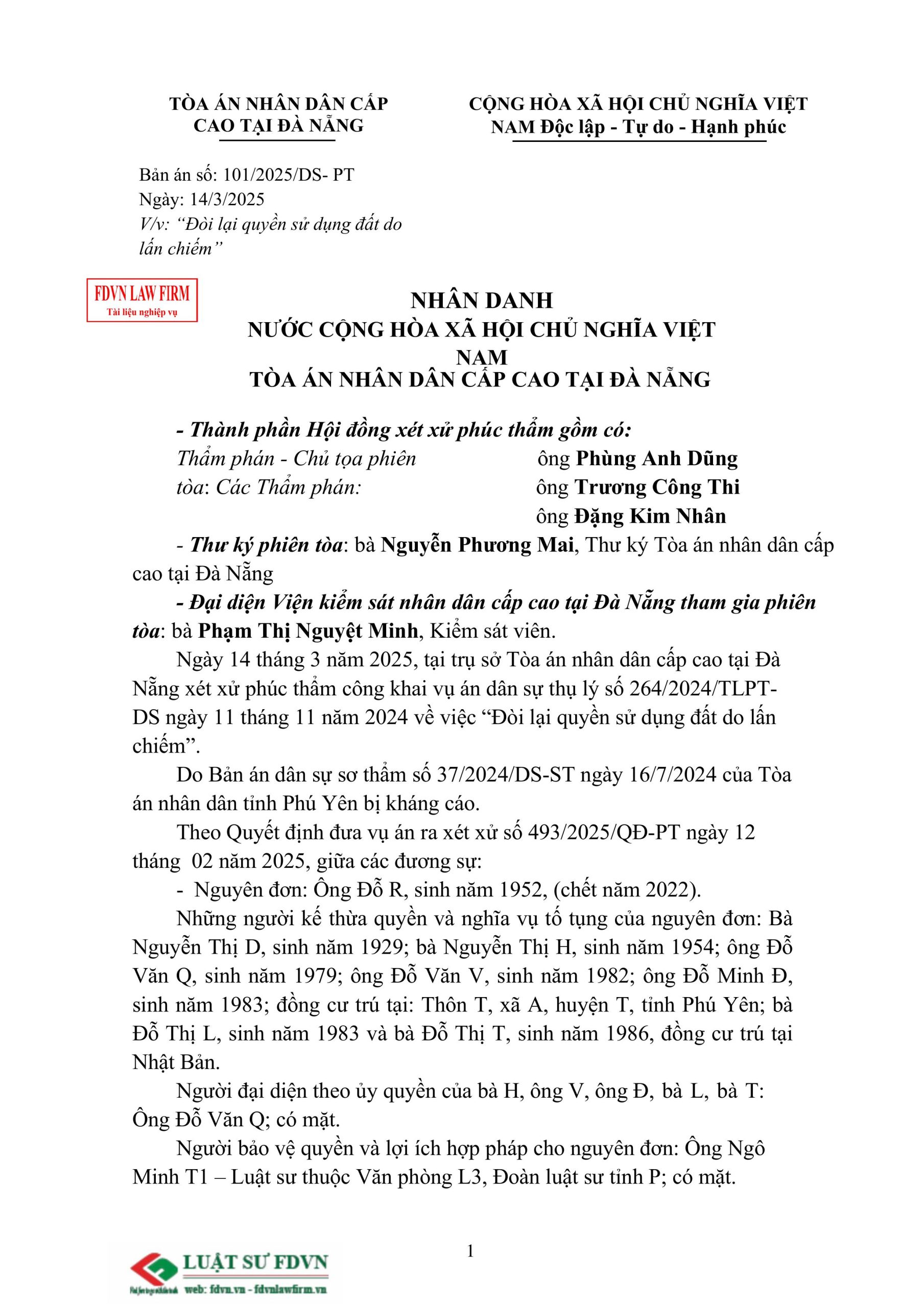 Website: www.fdvn.vn www.fdvnlawfirm.vn www.diendanngheluat.vn www.tuvanphapluatdanang.com